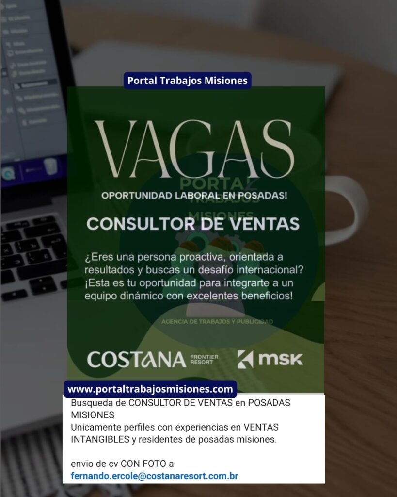 Anuncios LaboralesPosadas BUSQUEDA LABORAL CONSULTOR DE VENTAS POSADAS MANDAR CV: fernando.ercole@costanaresort.com.br