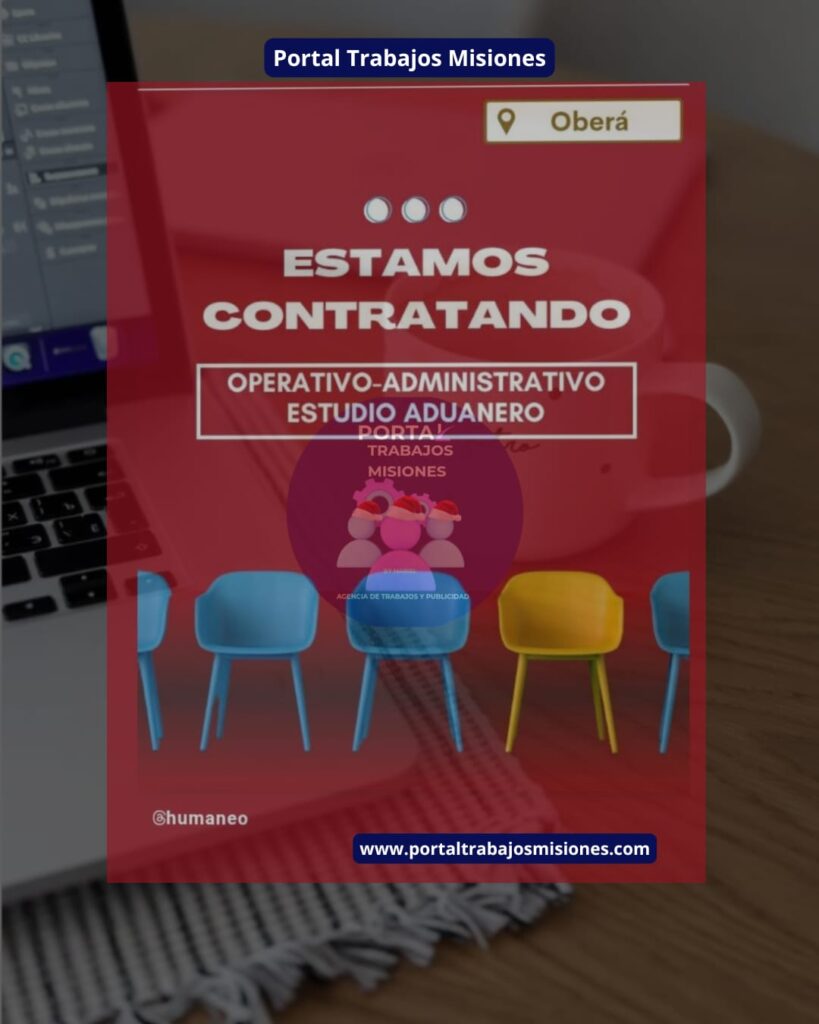 Nos encontramos en la búsqueda de una persona responsable, comprometida y organizada para cubrir un puesto administrativo-operativo en importante estudio aduanero de la ciudad de Oberá.