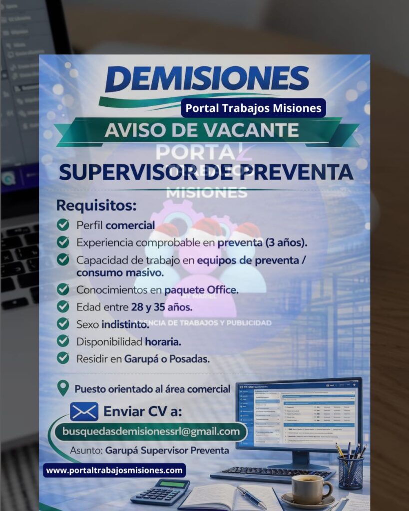 BUSQUEDA LABORAL SUPERVISOR PREVENTA GARUPA